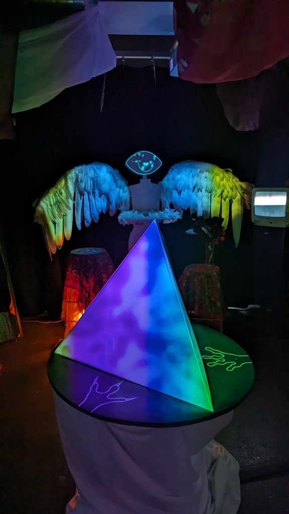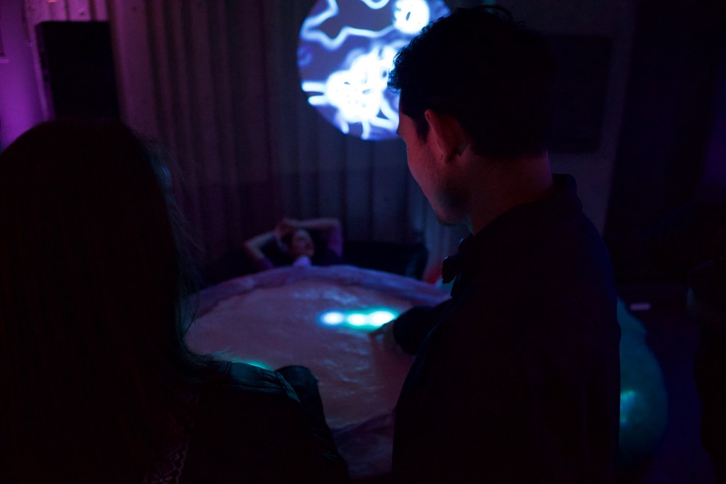 I worked on the sound design and the programming of 3 DMX spotlights in this project. For the sound design, I used TouchDesigner that communicated with the software AbletonLive. My goal was to create ambiance music and feedback sounds that guided clearly the actions of users. On page 20 of our documentation guide below, you can see my creative process for constructing ambient music to immerse participants in the esoteric realm we’ve envisioned.
